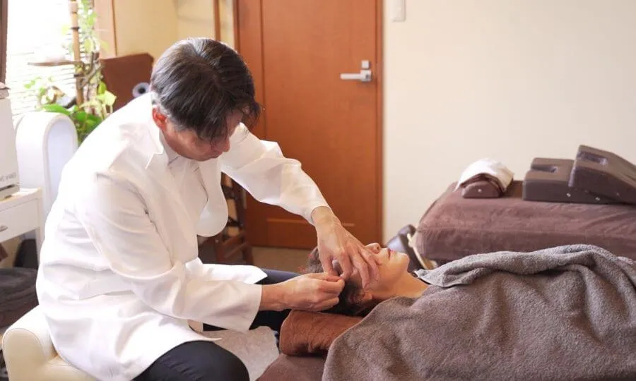 頭皮には、育毛に関わる多数のツボがあります。「百会」「風池」「天柱」「通天」など、髪の成長と密接に関わる経穴を中心に鍼で刺激し、頭皮の代謝を活性化します。さらに顔の筋肉にもアプローチすることで、表情のリフトアップや頭皮の引き上げ効果も期待できます。